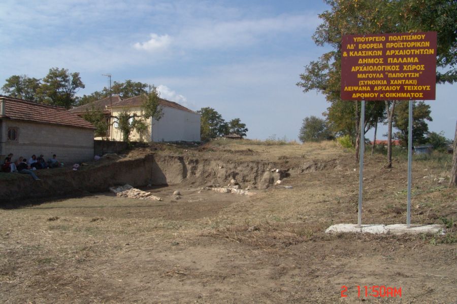 Στην περιοχή του Δήμου Παλαμά υπάρχουν αρκετοί αρχαιολογικοί χώροι τόσο των προϊστορικών όσο και των ιστορικών χρόνων. Μέσα στη σύγχρονη πόλη, στον κηρυγμένο αρχαιολογικό χώρο «Μαγούλα Παπουτσή» ή Χαντάκι Μαγούλα», σε οικόπεδο επί της οδού Θερμοπυλών, αποκαλύφθηκαν κεραμική και αρχιτεκτονικά λείψανα αρχαίου οικισμού. Κατά τη διενέργεια σωστικής ανασκαφικής έρευνας ήρθε στο φως τμήμα αρχαίου τείχους, το οποίο αποκαλύφθηκε σε βάθος 2,72 μ.. Το τείχος εμφανίστηκε σε μήκος 6,30 μ. και έχει πλάτος 1,60 μ.. Βορειοδυτικά της εσωτερικής παρειάς του τείχους, σε βάθος 2,96 μ., εντοπίστηκε τμήμα δρόμου, πλάτους 5,70 μ., που ακολουθούσε μάλλον την πορεία του τείχους. Επίσης, στη συνέχεια και ΒΔ του δρόμου αποκαλύφθηκε τμήμα κτιρίου, το οποίο έχει πορεία παράλληλη προς το τείχος.